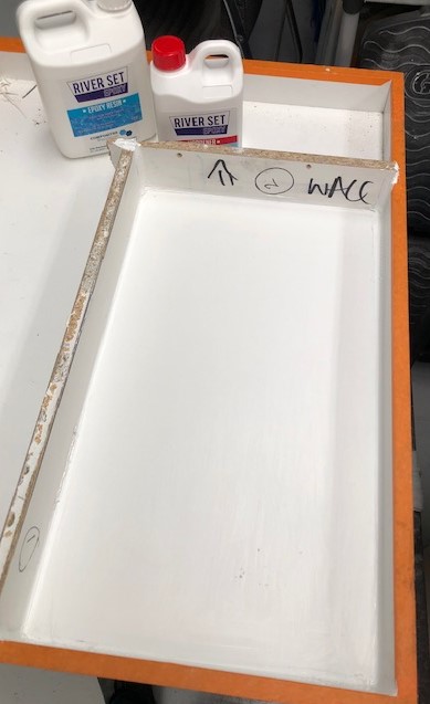 - 创建一个盒子作为基本模板或模具来包含河流表。理想情况下,我们倾向于选择三聚氰胺,因为它具有成本效益、丰富、已经密封且随时可用,您还可以使用丙烯酸或塑料板、结构层、金属或任何其他合适的密封表面。
