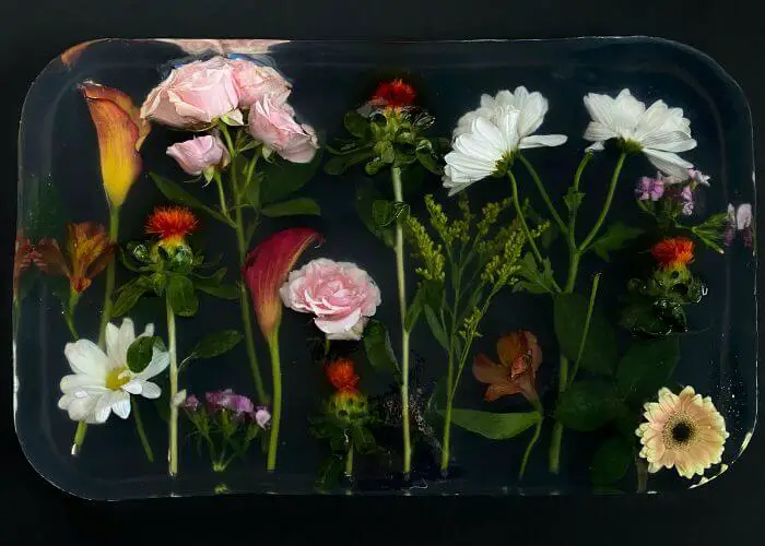 当您使用环氧树脂时,很多东西会漂浮在其中。花朵特别困难,因为它们没有重量,而且花瓣没有连接到任何可以帮助它们沉没或粘附在您的项目上的东西。