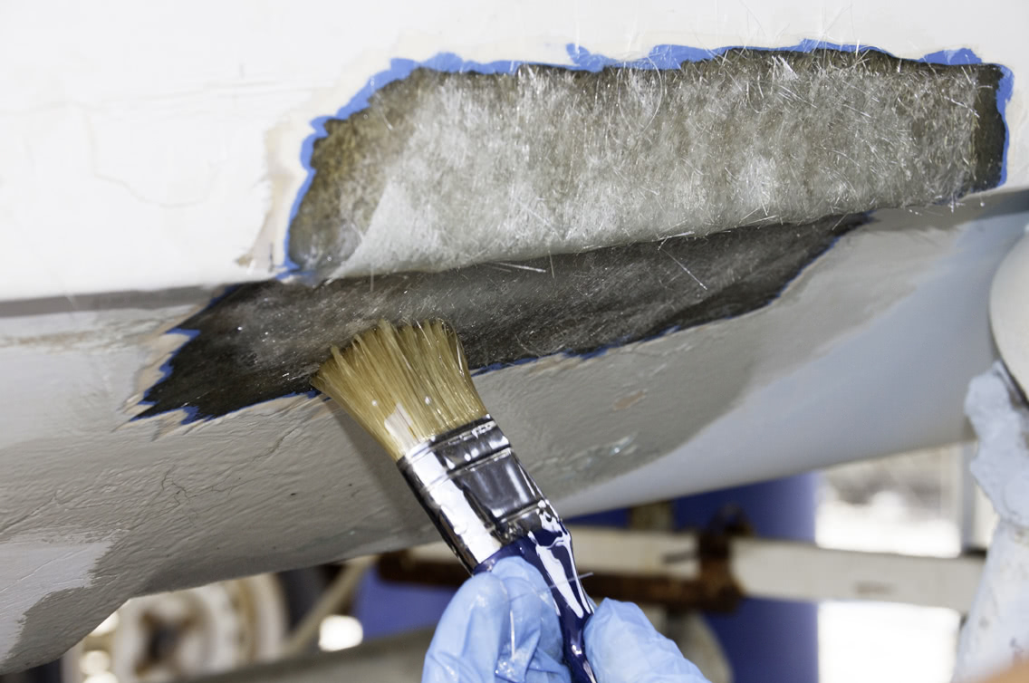 游艇的船体由玻璃纤维毡和聚酯树脂分几层制成层压板。层压增加了玻璃纤维垫的抗拉强度,同时提供足够的弹性以承受偶尔的粗暴系泊操作。然而,基于聚酯的 GRP的最大缺点是它具有透水性。为了阻止水通过,胶衣为船体提供了一层保护层。