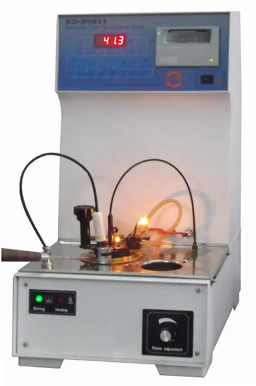 例如煤油的闪点是 40℃,它在室温15~20℃情况下与明火接近不能立即燃烧,因为这个温度比闪点低,蒸发出来的油蒸气量很少,不能闪光,更不能燃烧。只有当煤油被加热到40℃时才能闪燃。这就是说,低于闪点温度时,遇到火种的瞬间作用并不会燃烧,只有在闪点温度以上时才有着火的危险。