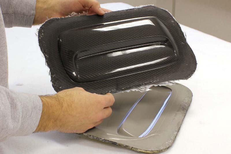 当模具达到了室内的温度后,可将真空袋、透气毡和隔离膜从模具上剥去,然后就可脱模了。你会发现拆掉真空袋、透气毡、隔离膜非常简便;真空袋和隔离膜可以扔掉,而透气毡可重复利用。为了能更加轻松的脱模,请从模具的边缘处开始,可以使用不会划伤的工具像是塑料刮片,将模具从一个边角处撬开。固化后的产品,现在可以开始用Dremel或类似的工具进行切边,也可用粗砂纸打磨边缘。