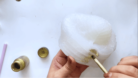 一旦你已经干刷了天使之翼模具的内部,把它变回原来的形状,并开始填充你的树脂混合物。