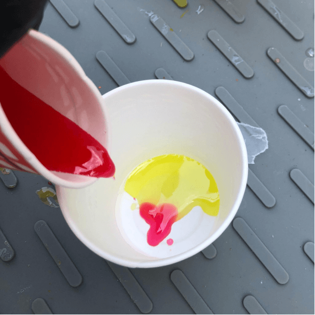 有两种主要技术可以混合自己的树脂颜色。您可以直接从瓶子中添加多种染料,然后混合到一份透明树脂中。或者,您可以单独混合颜色,然后在另一个干净的杯子中将这些颜色混合在一起。