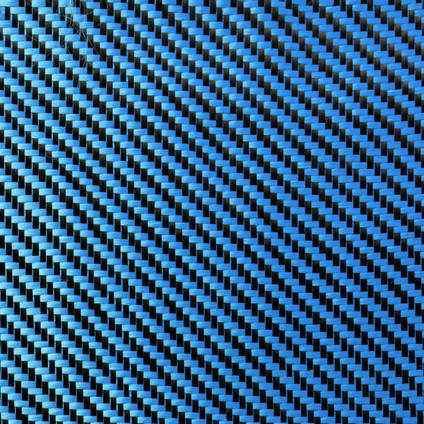这种非常特别的面料使用真正的 3k 碳纤维与亮蓝色涤纶交织而成,创造出一种令人惊叹的面料,闪耀着亮蓝色的光芒,但也是独特的碳纤维面料,带有 2/2 斜纹编织图案的墨黑色对角线条纹。